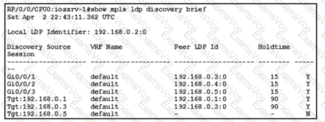 With which router does IOSXRV-1 have LDP session protection capability enabled but session hold up is not active?