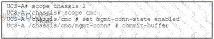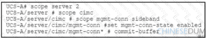 A Cisco UCS C-Series server needs to be installed in a data center. The server must be managed by using Cisco UCS Manager with a single cable for management and data traffic. Which set of commands must be run on the server after a physical connection is established?