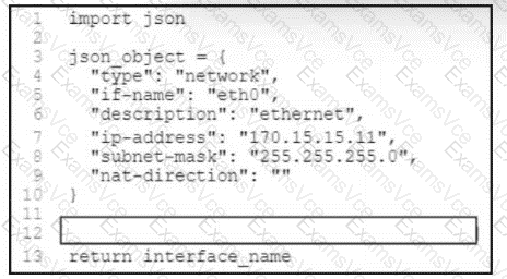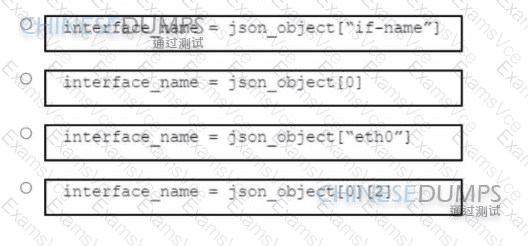 Refer to the exhibit. A network engineer must retrieve the network interface name from a JSON object. The engineer loads the JSON into a Python dictionary named json_object. Which code snippet completes the Python script?