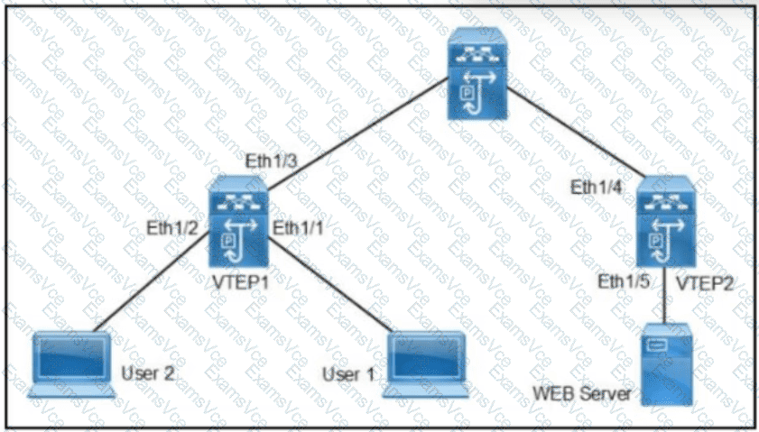 Refer to the exhibit. User 1 and user 2 are connected to the VTEP1 switch. The users can reach the WEB server. A monitoring tool shows degrading network performance that consumes the interface bandwidth between VTEP1 and the spine switch. An engineer noticed that user 1 sends many ARP requests. Which command set on VTEP1 mitigates the issue without preventing user 1 from sending ARP requests?