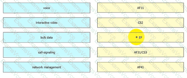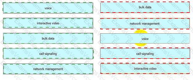 According to the QoS Baseline Model, drag and drop the applications from the left onto the Per-Hop Behavior values on the right.