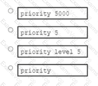 An engineer configures Class-Based Weighted Fair Queuing, but must still configure Low Latency Queuing to prioritize voice audio traffic and guarantee 5 Mbps of bandwidth. Which Cisco IOS command must be run in the voice class map?