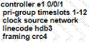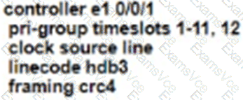Refer to the exhibit. An administrator must replace the T1 card with an E1 card. What is the correct configuration if the administrator was asked to configure 12 time slots?