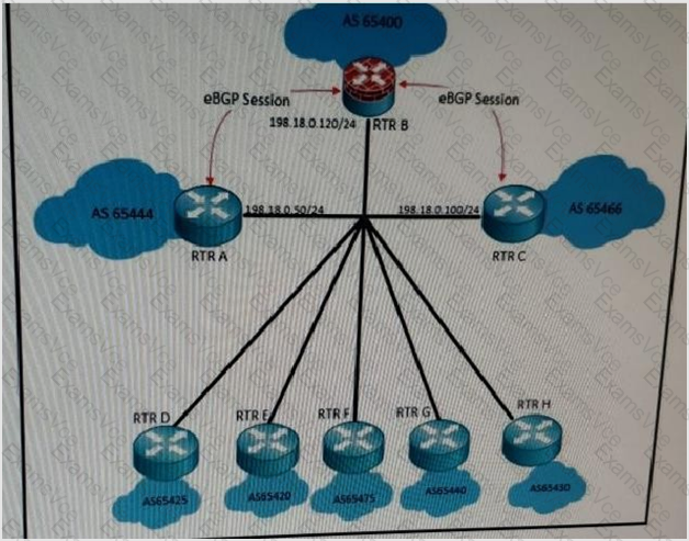 Transit traffic in this large enterprise campus network passes the eBGP core. Per security policy, traffic coming from AS 65444 destined for AS 65466 and vice-versa must pass through AS 65400. An audit discovers that traffic between 65444 and 65466 did not pass through 65400, instead it is communicating directly. How must you design BGP to ensure that the traffic from AS 65444 destined for AS 65466 passes through AS65400 on this broadcast network?