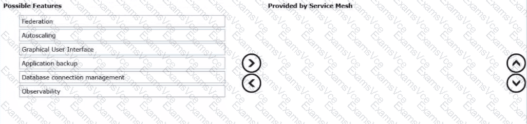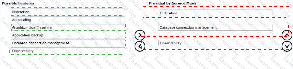 Drag and drop the three features into the correct order from Possible Features list on the left and place them into the Provided by Service Mesh on the right side. (Choose three.)