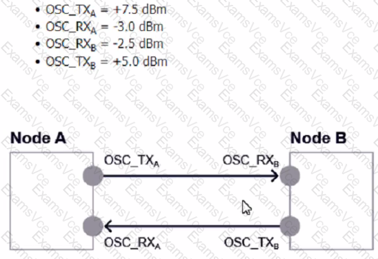 Consider the exhibit. Given the following power readings, what is the calculated span loss from Node A to Node B?