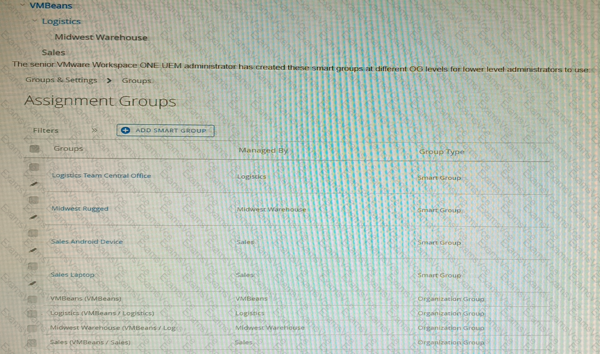 Refer to the exhibit. The VMBeans company has created the following organization group (OG) structure: