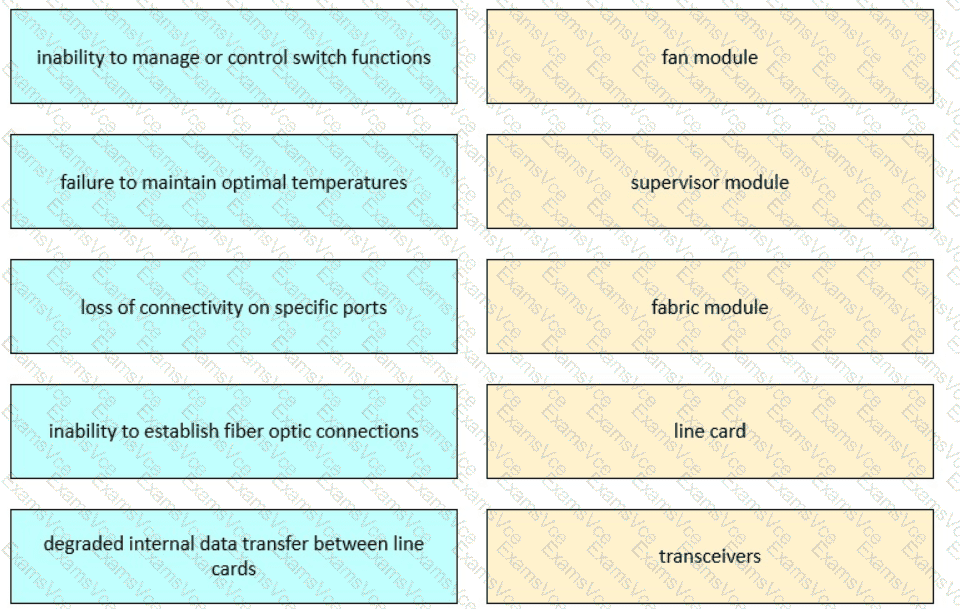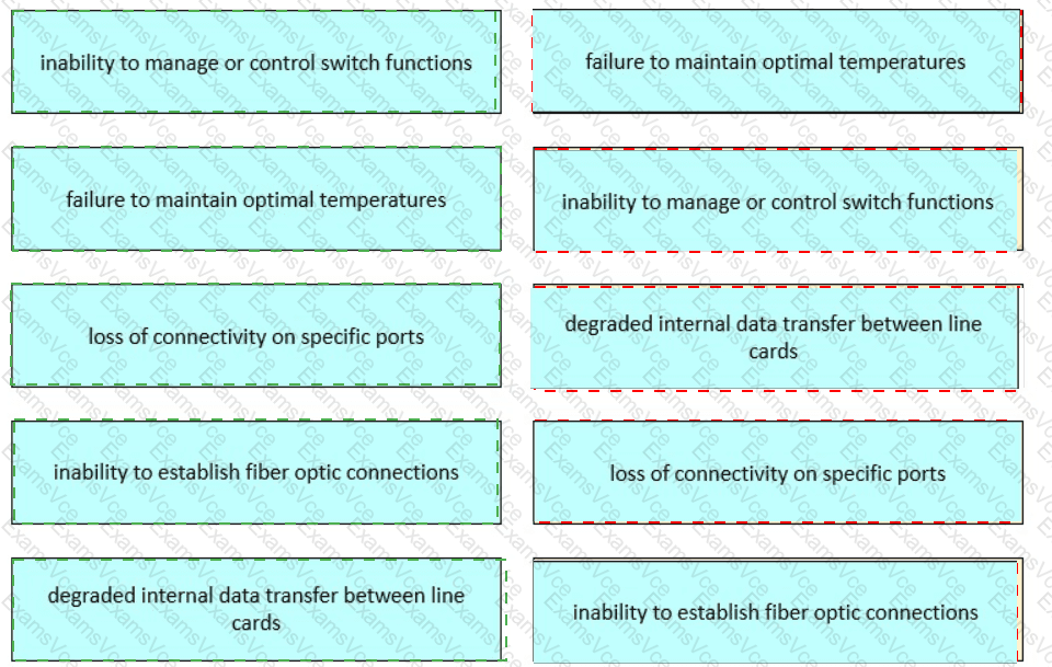 Drag and drop the failures from the left onto the responsible devices in the MDS field-replaceable unit on the right.