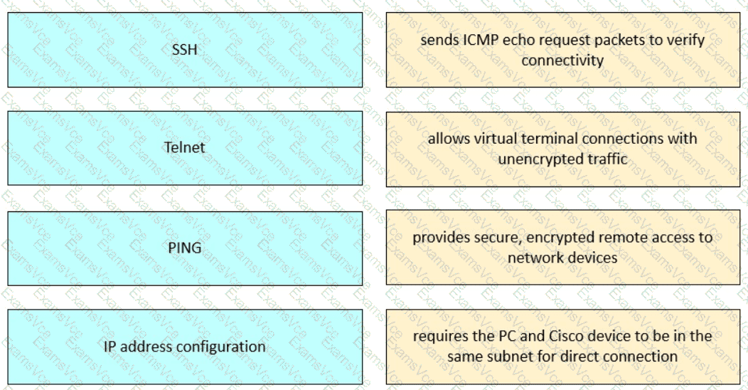 Drag and drop the network connectivity and management tools used to ensure connectivity from the left onto the description on the right.