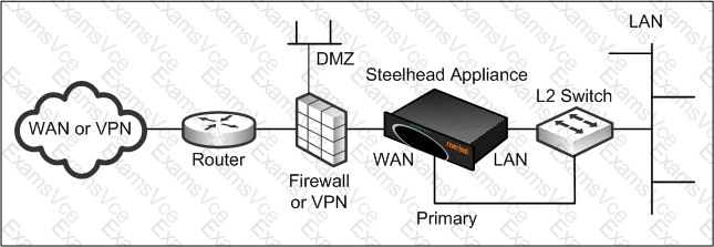 The customer would also like to deploy their data center Steelhead appliance in a way that would allow them to keep transparency to the LAN servers, and allow the LAN servers to initiate optimized connections to remote sites. The current network architecture can satisfy these requirements by using which following deployment method?