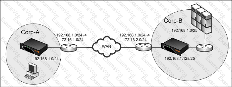 Corp-A and Corp-B have overlapping address space and therefore the network administrator implemented NAT to overcome this. Users from Corp-A NAT to 172.16.1.0/24 and users from Corp-B NAT to 172.16.2.0/24. Users in Corp-A use the destination address of 172.16.2.0/24 to access the resources in Corp-B. The servers in Corp-B use the client IP for authentication. You deploy the Steelhead appliance using the default WAN visibility mode but noticed all the connections are passed-through. What is the likely problem?