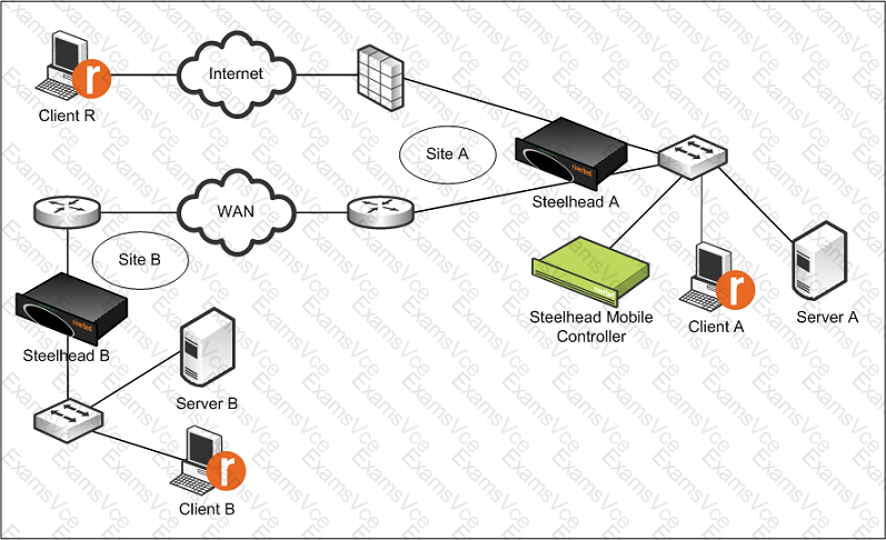 If Steelhead Mobile Client B offers up a share on the network, what is needed on Steelhead Mobile Client R to open an optimized connection to this share if enhanced auto-discovery is enabled on all Steelhead appliances?