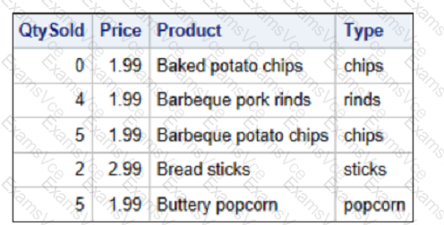 * The OTHERSNACKS data set should include QtySold, Price, product, and Type.