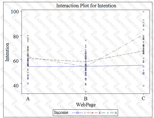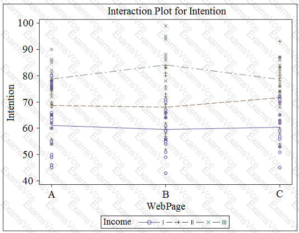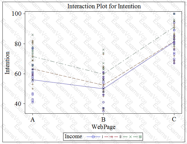 A marketing analyst assessed the effect of web page design (A, B, or C) on customers' intent to purchase an expensive product. The focus group was divided randomly into three sub-groups, each of which was asked to view one of the web pages and then give their intent to purchase on a scale from 0 to 100. The analyst also asked the customers to give their income, which was coded as: I (lowest), II (medium), or III (highest). After analyzing the data, the analyst claimed that there was significant interaction and the webpage design mainly influenced high income people.