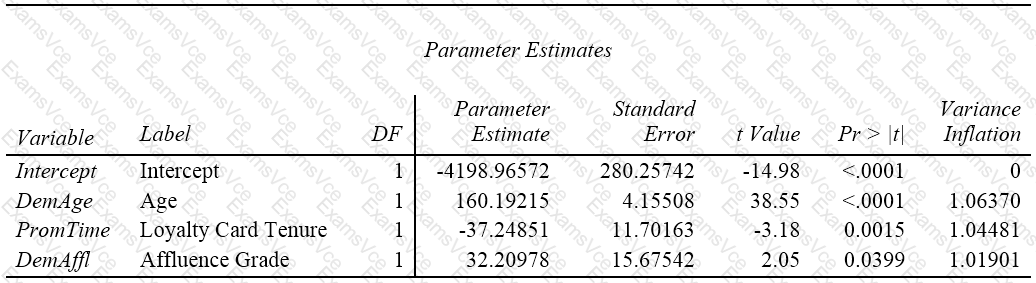 Output from a multiple linear regression analysis is shown.