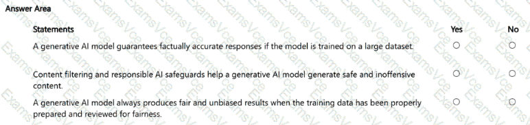 - For each of the following statements, select Yes if the statement is true. Otherwise, select No.