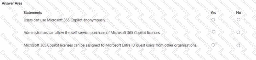 For each of the following statements, select Yes if the statement is true. Otherwise, select No. NOTE: Each correct selection is worth one point