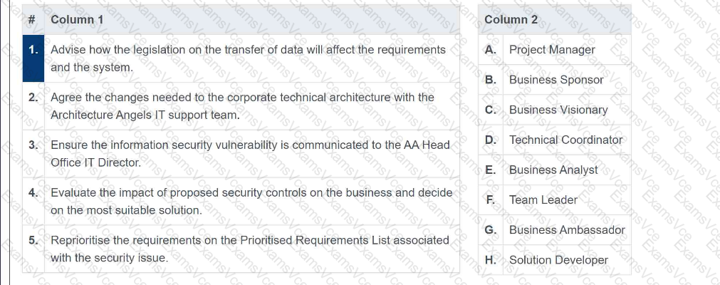 Column 1 describes a list of actions related to dealing with the security issue with the hotel reservation system. Column 2 lists the key roles. For each action in Column 1,