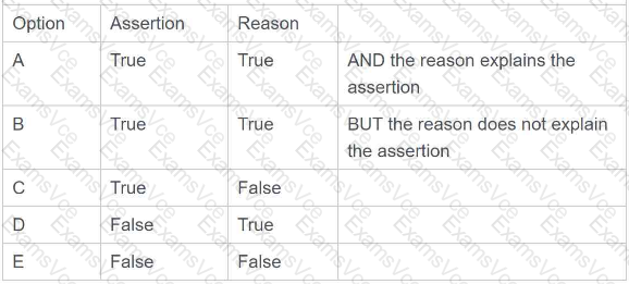 Lines 1 to 5 in the table below consist of an assertion statement and a reason statement. For each line identify the appropriate option, from options A to E, that applies. Each option can be used once, more than once or not at all.