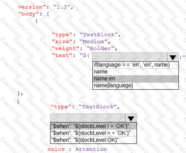How should you complete the code? To answer, select the appropriate options in the answer area.