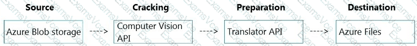 How should you complete the skillset design diagram? To answer, drag the appropriate services to the correct stages. Each service may be used once, more than once, or not at all. You may need to drag the split bar between panes or scroll to view content.