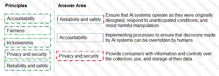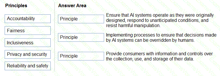 Match the Microsoft guiding principles for responsible AI to the appropriate descriptions.