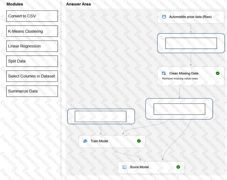 You need to use Azure Machine Learning designer to build a model that will predict automobile prices.
