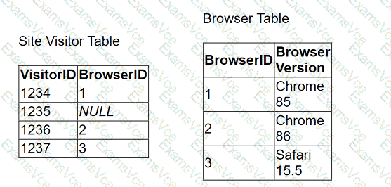 The data is stored in the format shown below in the related table, with a NULL BrowserID stored in the Site Visitor Table if an unknown browser version