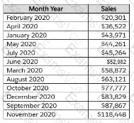 A Data Analyst has a dataset that contains the fallowing rows of sales data.