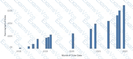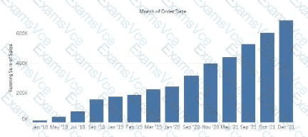 A Data Analyst has the following chart that shows the cumulative volume of sales from various dates.