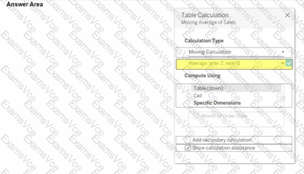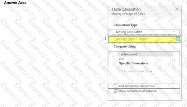 You use a quick table calculation lo calculate the moving average of a measure named Sales.