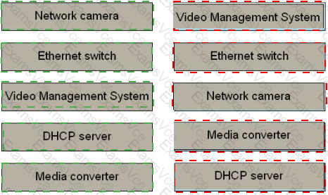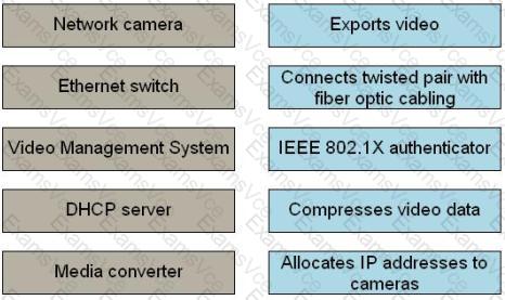 Match each function to the correct video surveillance system component. Drag each gray box from the left column to the matching blue box in the right column.