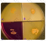 One of the key characteristics to the identification of Nocardia asteroides is its inability to hydrolyze casein, tyrosine or xanthine, as shown in this photograph. Nitrates are reduced to nitrites. Both Nocardia brasiliensis and Actinomadura madurae hydrolyze both casein and tyrosine; Streptomyces griseus hydrolyzes all three of the substrates.