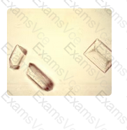 The identification of the crystals depicted in this image are triple phosphate crystals. Triple phosphate crystals may be normal but are usually associated with alkaline urine. These colorless crystals have a characteristic "coffin lid" appearance.