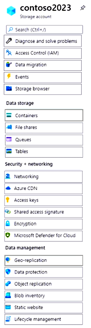 You have a Microsoft Entra user named User1 and a read-access geo-redundant storage (RA-GRS) account named contoso2023. You need to meet the following requirements: