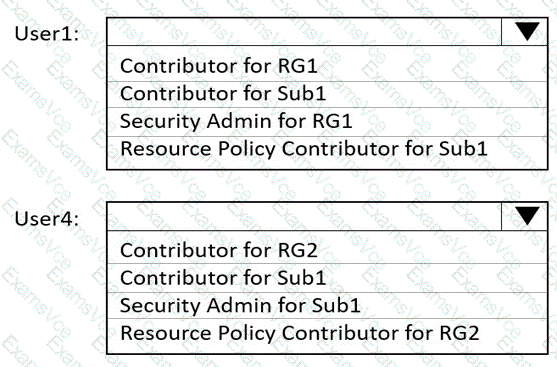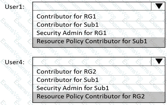 Therefore, User4, who needs to assign initiatives to RG2, must be assigned the Contributor role at the RG2 scope.