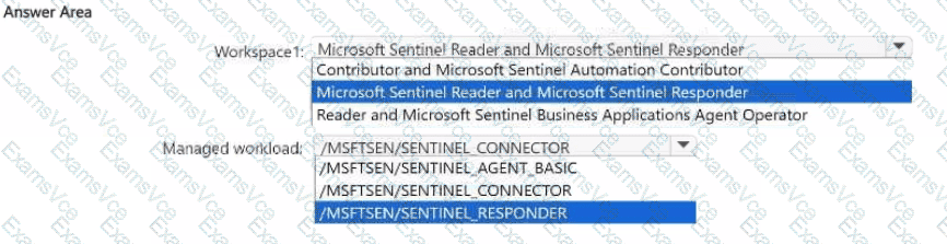 Which roles should you assign to the managed workload and the connector for Workspace1? To answer, select the appropriate options in the answer area.