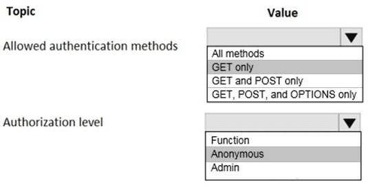 What should you recommend? To answer, configure the appropriate options in the dialog box in the answer area.