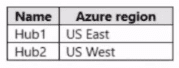 You have an Azure subscription that contains a Basic Azure virtual WAN named Virtual/WAN1 and the virtual hubs shown in the following table.