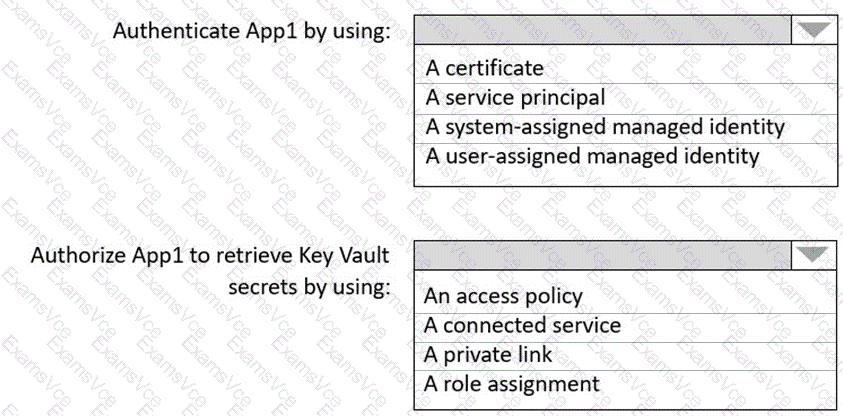 You need to recommend a solution to ensure that App1 can access the third-party credentials and access strings. The solution must meet the security requirements.