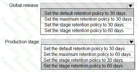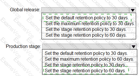 How should youconfigure the release retention policy for the investment planning applications suite? To answer, select the appropriate options in the answer area.