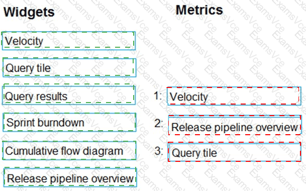 Which widget should you use for each metric? To answer, drag the appropriate widgets to the correct metrics. Each widgetmay be used once, more than once, or not at all. You may need to drag the split bar between panes or scroll to view content.
