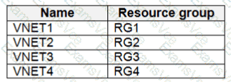 Sub1 contains six resource groups named RG1, RG2, RG3, RG4, RG5, and RG6.