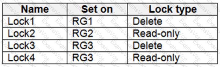 There are no locks on RG4, while the other resource groups have either Delete or Read-only locks.