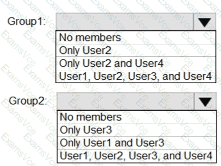 What is the membership of Group1 and Group2? To answer, select the appropriate options in the answer area.