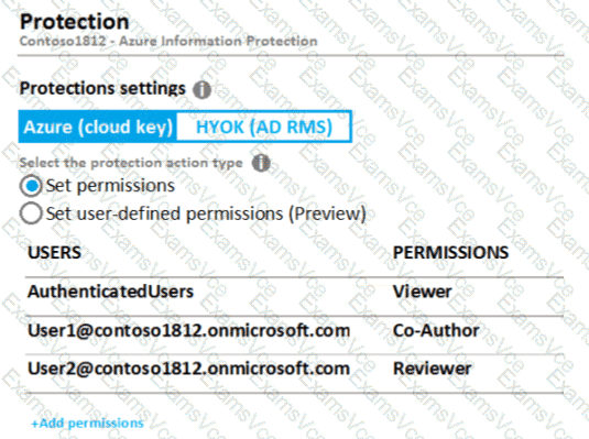 You create an Azure Information Protection label named Label1. The Protection settings for Label1 are configured as shown in the exhibit. (Click the Exhibit tab.)
