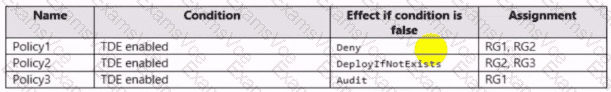 You assign polices to the resource groups as shown in the following table.