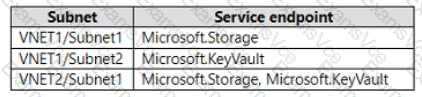 The subnets of the virtual networks have the service endpoints shown in the following table.
