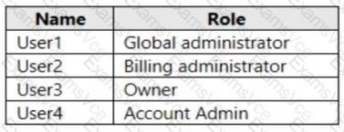 Your company has an Azure subscription named Subscription1 that contains the users shown in the following table.