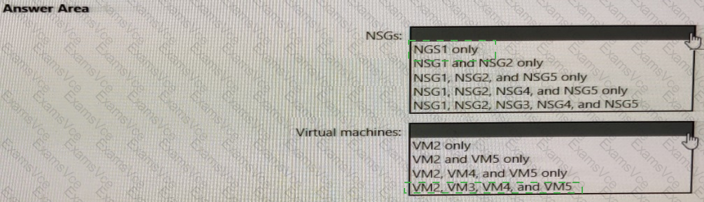 In which NSGs can you use ASG1 and to which virtual machine network interfaces can you associate ASG1? To answer, select the appropriate options in the answer area.